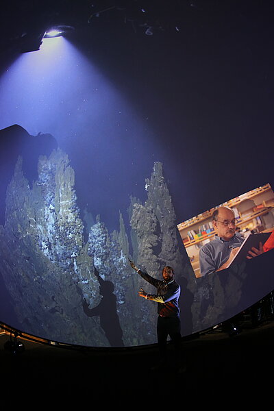 Zusammen mit den wissenschaftlichen Abteilungen des GEOMAR und internationalen Partnern fokussiert sich auf hochdynamische biogeochemische Meeresbodenprozesse, besonders im Bereich submariner Vulkanologie und Hydrothermalismus. Diese noch nicht voll verstandenen geologischen Phänomene gestalten den Meeresgrund innerhalb kurzer, menschlich erfassbarer Zeit auf dramatische Art und Weise völlig neu. Gleichzeitig beeinflussen sie die einzigartige Biologie der Tiefsee und die Wechselwirkungen mit der Chemie des Ozeans. Die naturwissenschaftlichen Fragestellungen rund um diesen Themenkomplex bestimmen die Auswahl unserer digitalen Arbeitsmethoden. In diesem Rahmen betreiben wir methodische Forschung und Entwicklung im Bereich der Robotik, Computergrafik, Datenmanagement, Immersionsforschung und Rezeptionsforschung. Drei Spannungsfelder interessieren uns fachübergreifend: