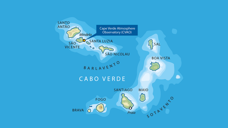 In operation since 2006, CVAO is a global station of the world-wide network of observatories operated by Global Atmospheric Watch (GAW). It is operated by a consortium of Cape Verde Institute of Meteorology and Geophysics, University of York in the UK, Max Planck Institute for Biogeochemistry in Jena, and Leibniz Institute for Tropospheric Research (TROPOS) in Leipzig. The observatory is named "Observatório Atmosférico de Cabo Verde: Humberto Duarte Fonseca" in memory of one of the most famous Cape Verdean scientists. CVAO is unique in that it is the only atmospheric observatory in the tropical Atlantic. Among other things, the observatory has global visibility by providing high-quality data to the international research community. It is thus an important tool for studying the transport and transformation of greenhouse and reactive gases, aerosols, pollutants, and desert dust from North America, Europe, and Africa over the tropical ocean. Download Animation