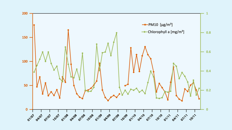 At CVAO, long-term measurements are performed to determine the seasonal patterns of dust concentration and investigate its physical properties and chemical composition. In particular, the deposition fluxes of important nutrients such as phosphorus, nitrogen, iron, zinc, silicon, and dust are evaluated and the underlying atmospheric processes that control their solubility and bioavailability to marine organisms are investigated. These data provide a base for the interpretation of measurements on the oceanic response to mineral dust input performed at CVOO such as the variation in primary productivity.