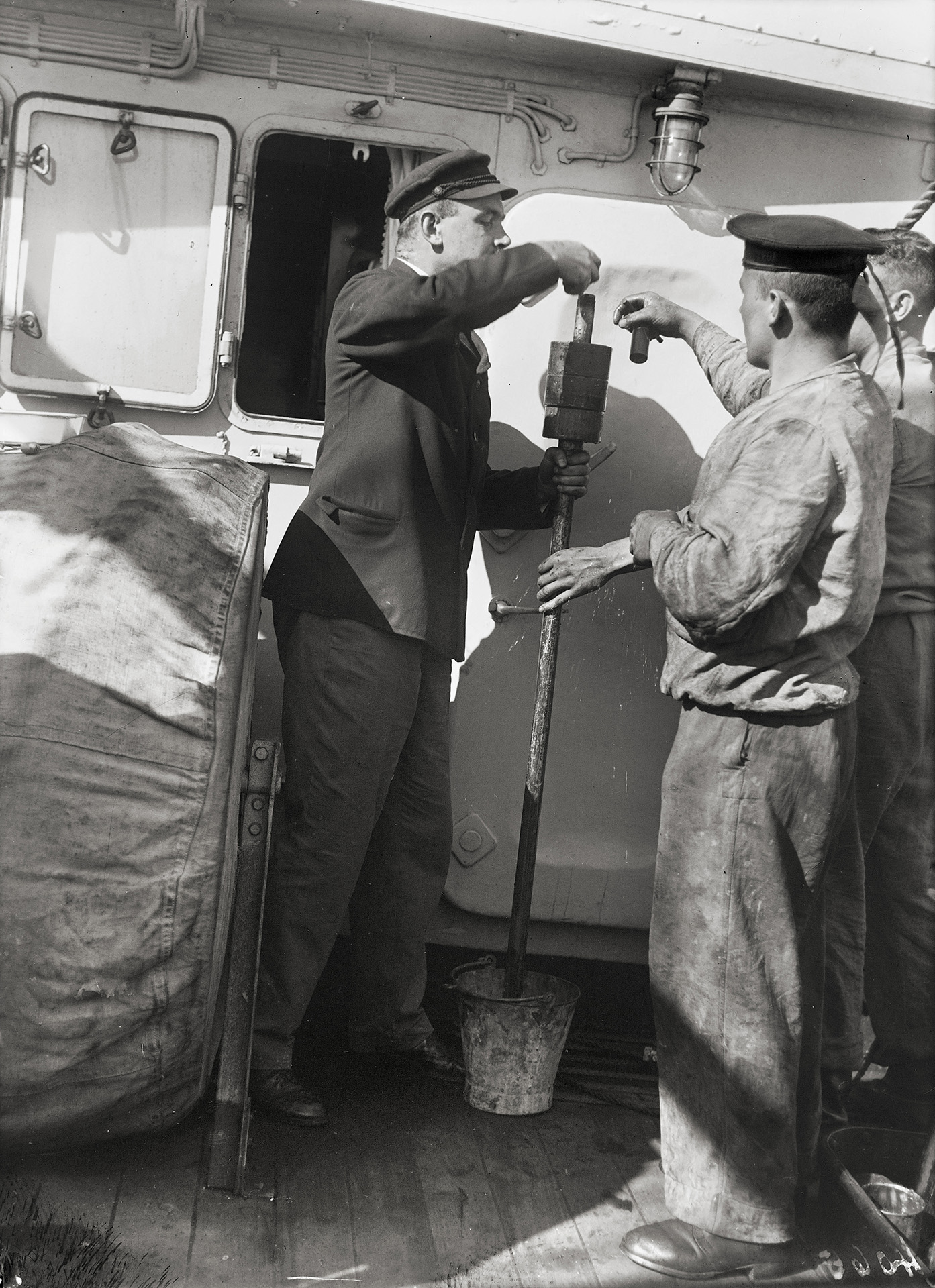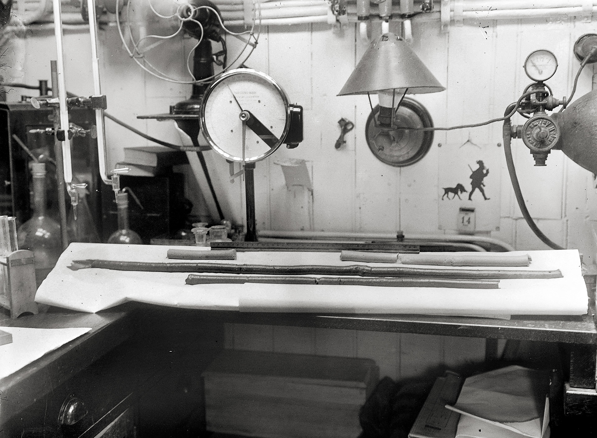 11 January 1925: "Beautiful weather, we are heading for the Strait of Magellan. We are conducting tests with the Behmlot. A lot of cartridges are failing. The device often swings and the calibration is incorrect."