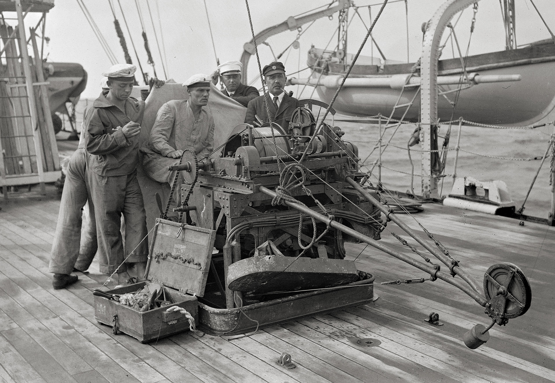 - Behm echo sounder: In 1912 (the year the Titanic sank), Alexander Behm applied for a patent for the echo sounding method. His "Behmlot", which was intended to make shipping safer and was further tested during the DAE, worked with a detonator cartridge. It reached depths of up to 750 metres and was still quite inaccurate and unreliable at that time. Today, Behm is considered the inventor of the echo sounder. The DAE heralded the era of echo sounder measurements.