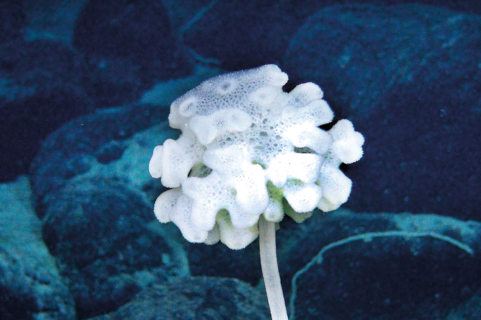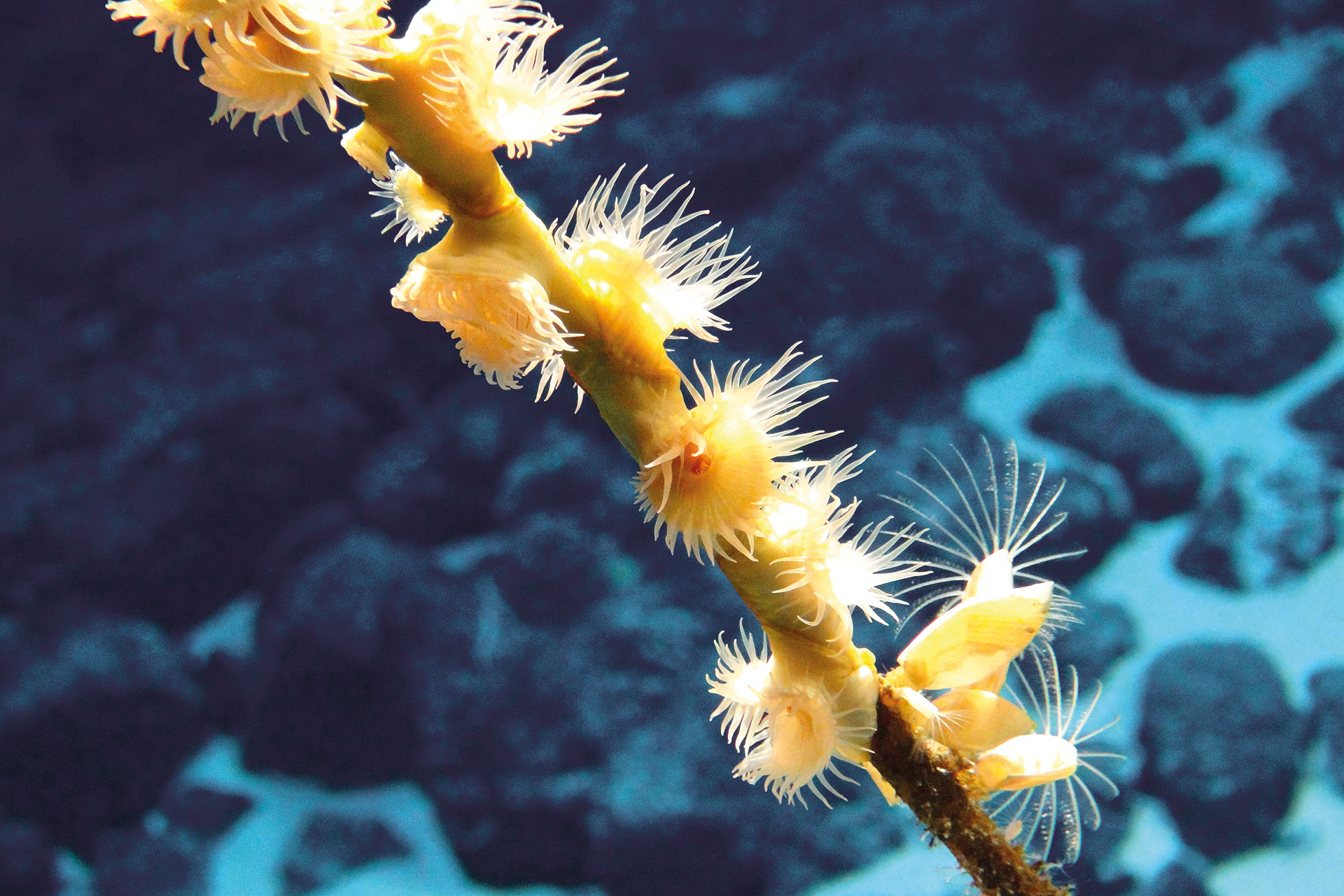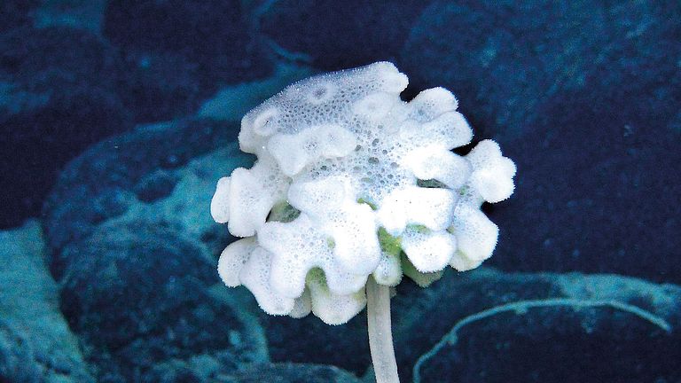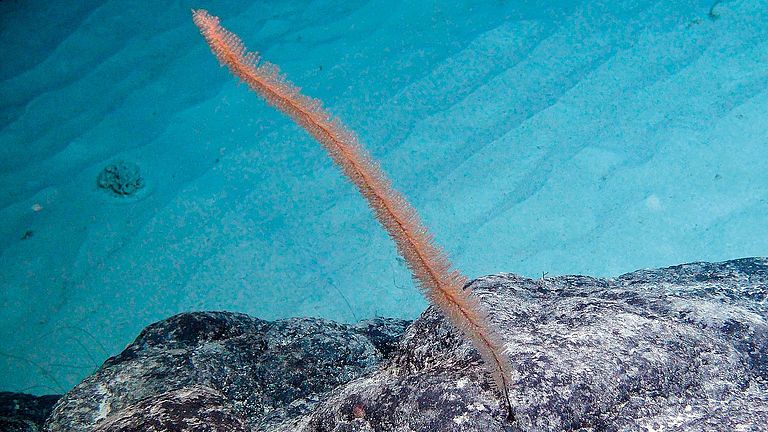 Underwater seamounts provide habitats for numerous organisms in the deep sea. Diverse ecosystems, which are scientifically mostly not understood, exist at these oases of the oceans. The species composition at seamounts differs considerably from ocean to ocean. The images shown here show some organisms at seamounts in the Clarion-Clipperton-Zone in the Central Pacific.