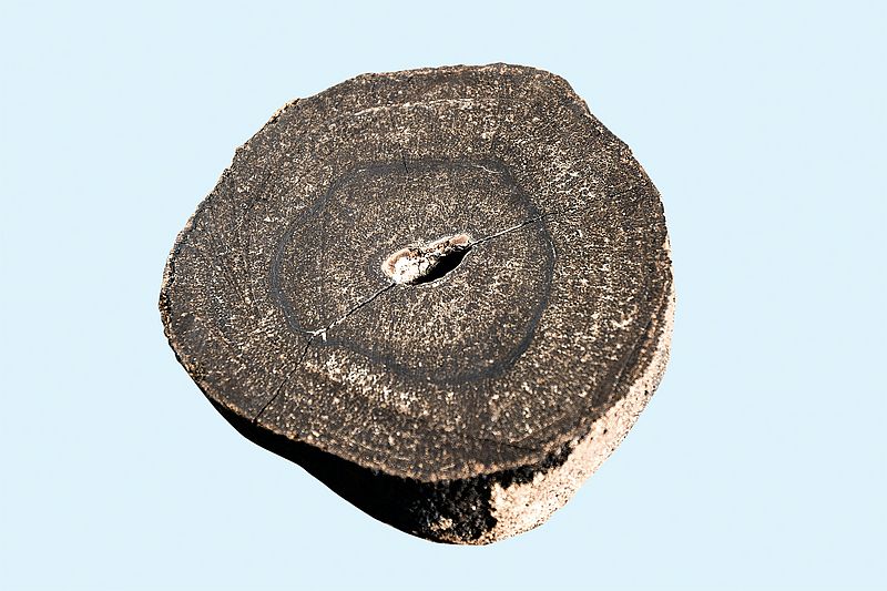 Manganese nodules come in many shapes and sizes. They can be round, elongated or flat. Their appearance is determined by the shape of the core, the surrounding sediment and their type of growth. Manganese nodules grow when metal ions either dissolved in seawater (hydrogenetic growth) or from the sediment pore-water (diagenetic growth) are deposited onto a nucleus. This nucleus may consist of rock fragments, shell remains, or shark teeth. Over time, concentric layers form around the core.