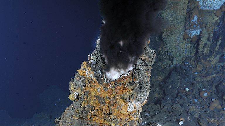 At the bottom of the sea, in a depth of several thousand metres, black smokers bring up valuable raw materials from inside the earth. Their metre-high vents seem to give off smoke like under water industrial chimneys.