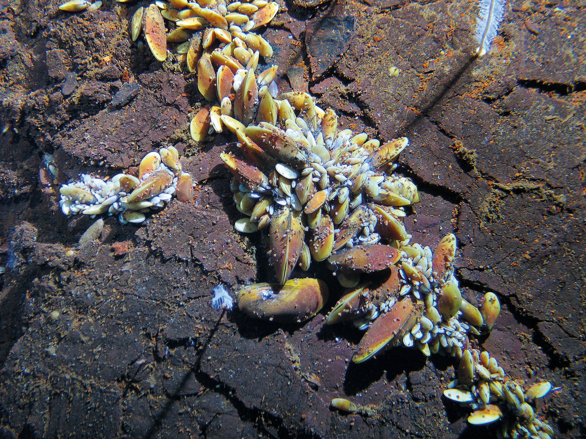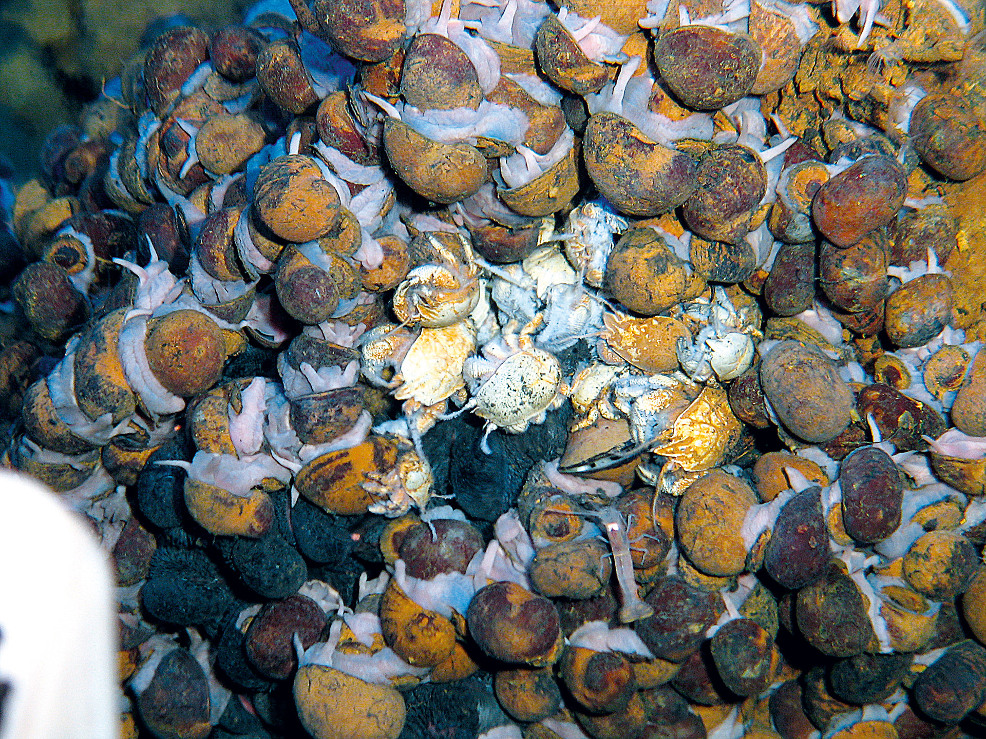 Symbioses form the basis of this ecosystem. Bakteria obtain their energy, independent of light, from the conversion of sulfur and methane, the so-called chemosynthesis. Only thus microorganisms can use this "dark energy," in which no solar energy is used for life. Deep-sea animals such as crabs and clams cannot perform chemosynthesis themselves, but through their close community with the microorganisms, the animals gain access to nutrients that the bacteria have produced through chemosynthesis.