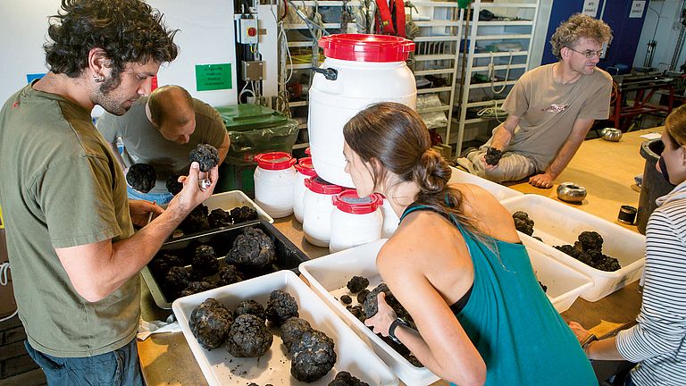 26 years later, in 2015, state-of-the-art technologies helped an international research team to assess the possible longer-term consequences of mining. During the SO242 expedition with the research vessel SONNE, precise maps of the plough tracks on the seabed were produced. Photos and videos gave the researchers a comprehensive and detailed impression of the environmental impact. The diving robot ROV Kiel 6000 was used to collect targeted samples from the disturbances, measure microbial activities and carry out toxicological experiments on the seabed at a depth of more than 4,000 metres.