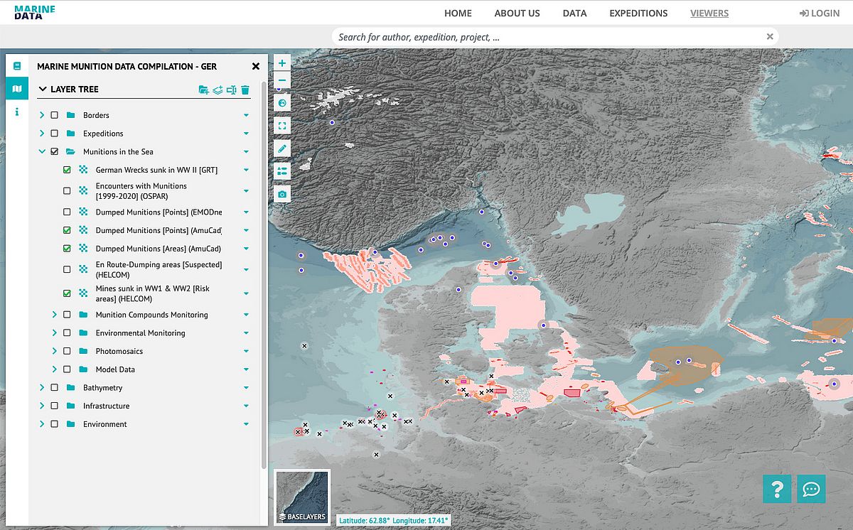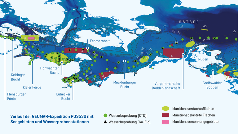 Within the framework of various research projects, GEOMAR scientists document the distribution of these contaminated sites from the Second World War, investigate their effects on the environment and contribute to the development of options for recovery and clearance.