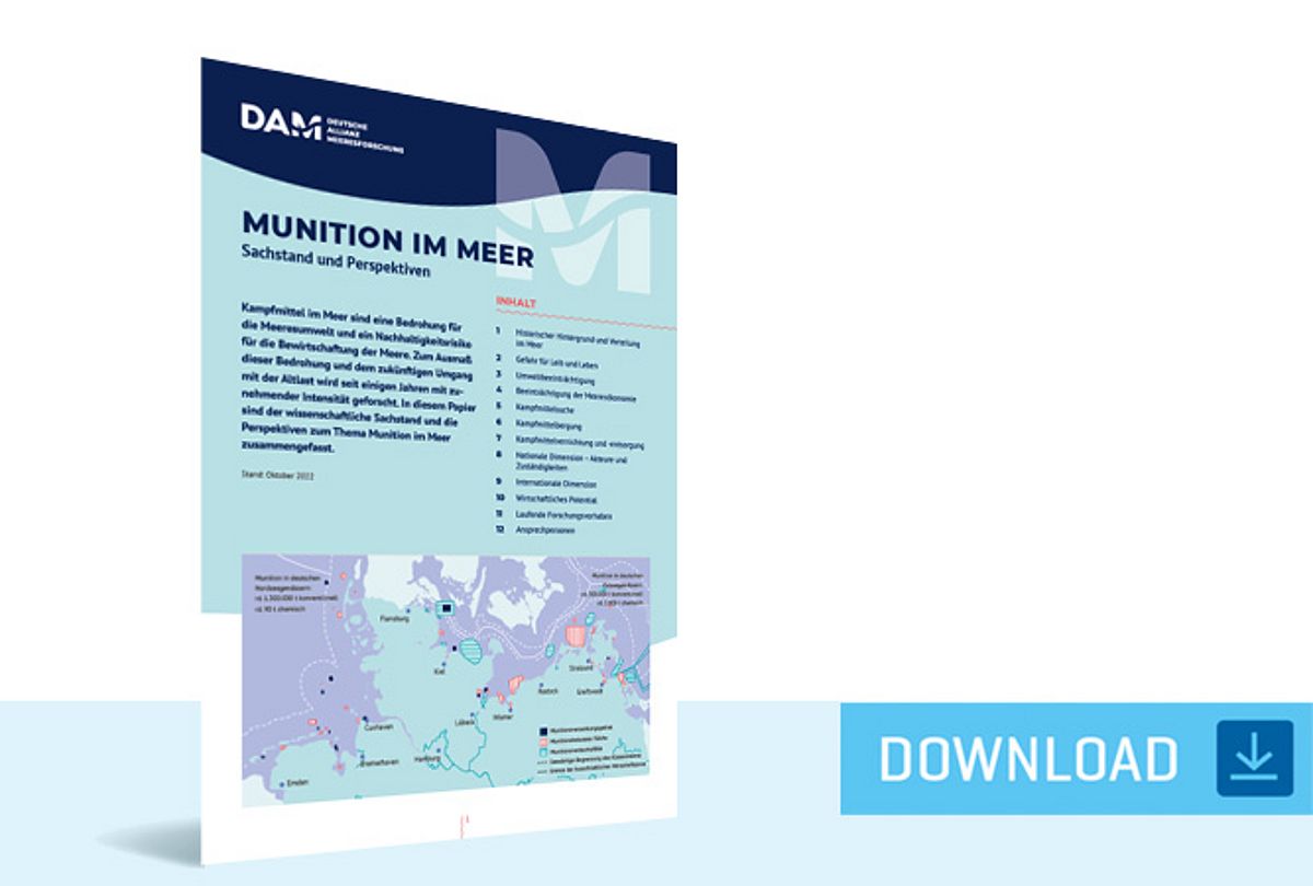 The research network CONcepts for conventional MArine Munition Remediation in the German North and Baltic Sea (CONMAR), launched in 2022 as part of the research mission “Protection and Sustainable Use of the Ocean” of the German Marine Research Alliance (Deutsche Allianz Meeresforschung, DAM), aims to provide new knowledge about risks, strategies and approaches to tackle ammunition waste at sea. The project coordinated at GEOMAR will run until 2024 and is funded with 4.8 million euros by the Federal Ministry of Education and Research.