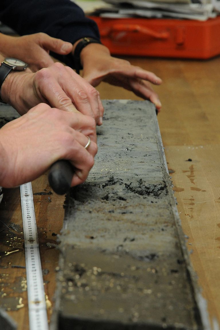 Processing of a sediment core. Like ice cores sediment cores are important climate archives. Photo: Jan Steffen, GEOMAR