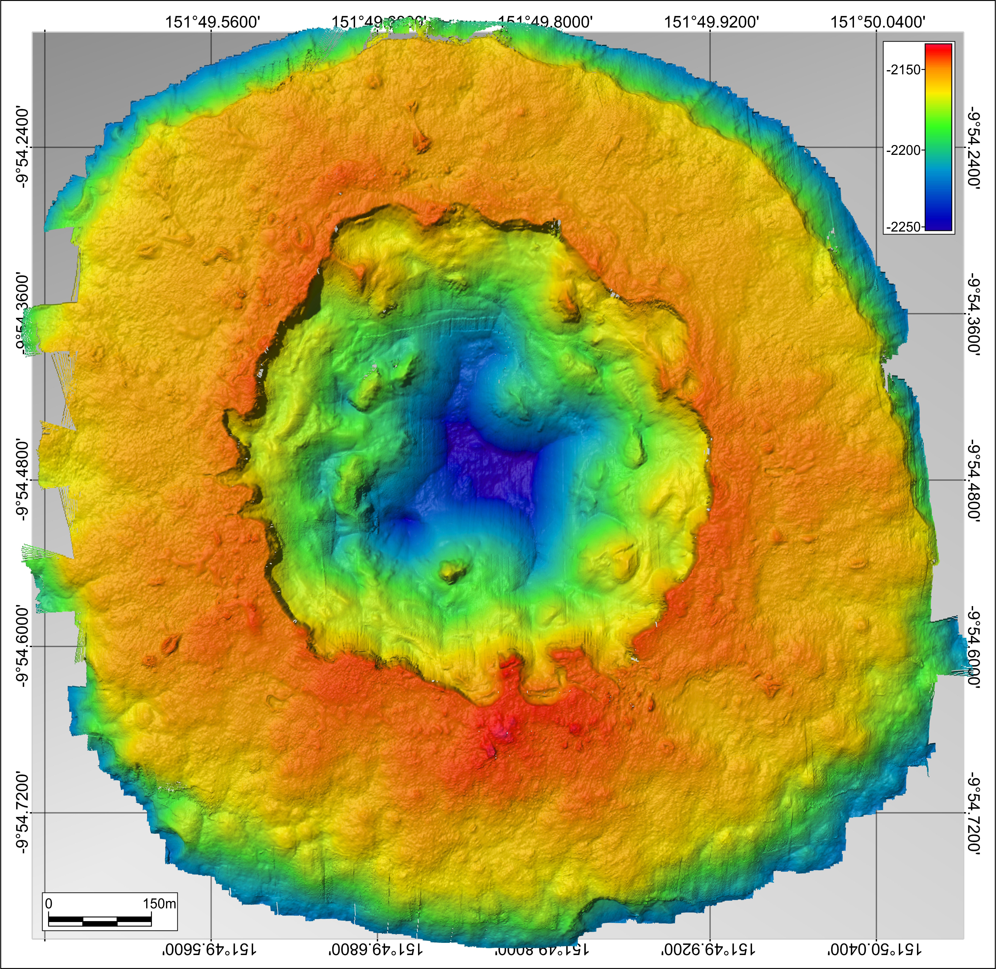 High-resolution mapping provides a better understanding of hydrothermal systems such as black smokers. Here, Franklin Seamount in the Pacific, imaged by an autonomous underwater vehicle (AUV), ABYSS. Image: Nico Augustin, GEOMAR