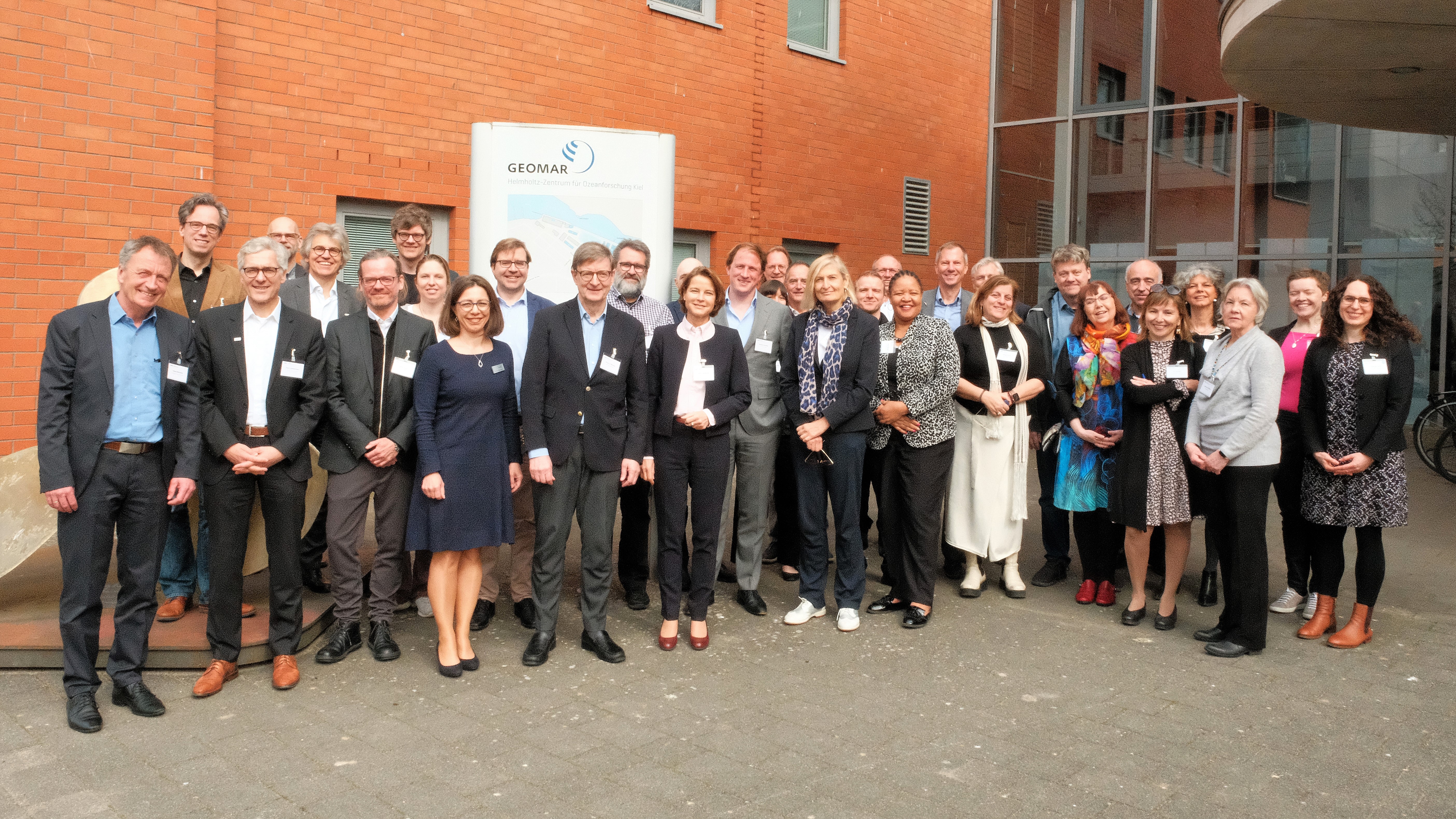 A high-calibre panel: The group of international experts with the members of the HMC Scientific Advisory, Collaboration and Steering Board as well as the directors of the Helmholtz host laboratories, the President of the Helmholtz Association and members of the Strategic Initiatives Division of the Helmholtz Association. Photo: Ann Kristin Montano (GEOMAR)