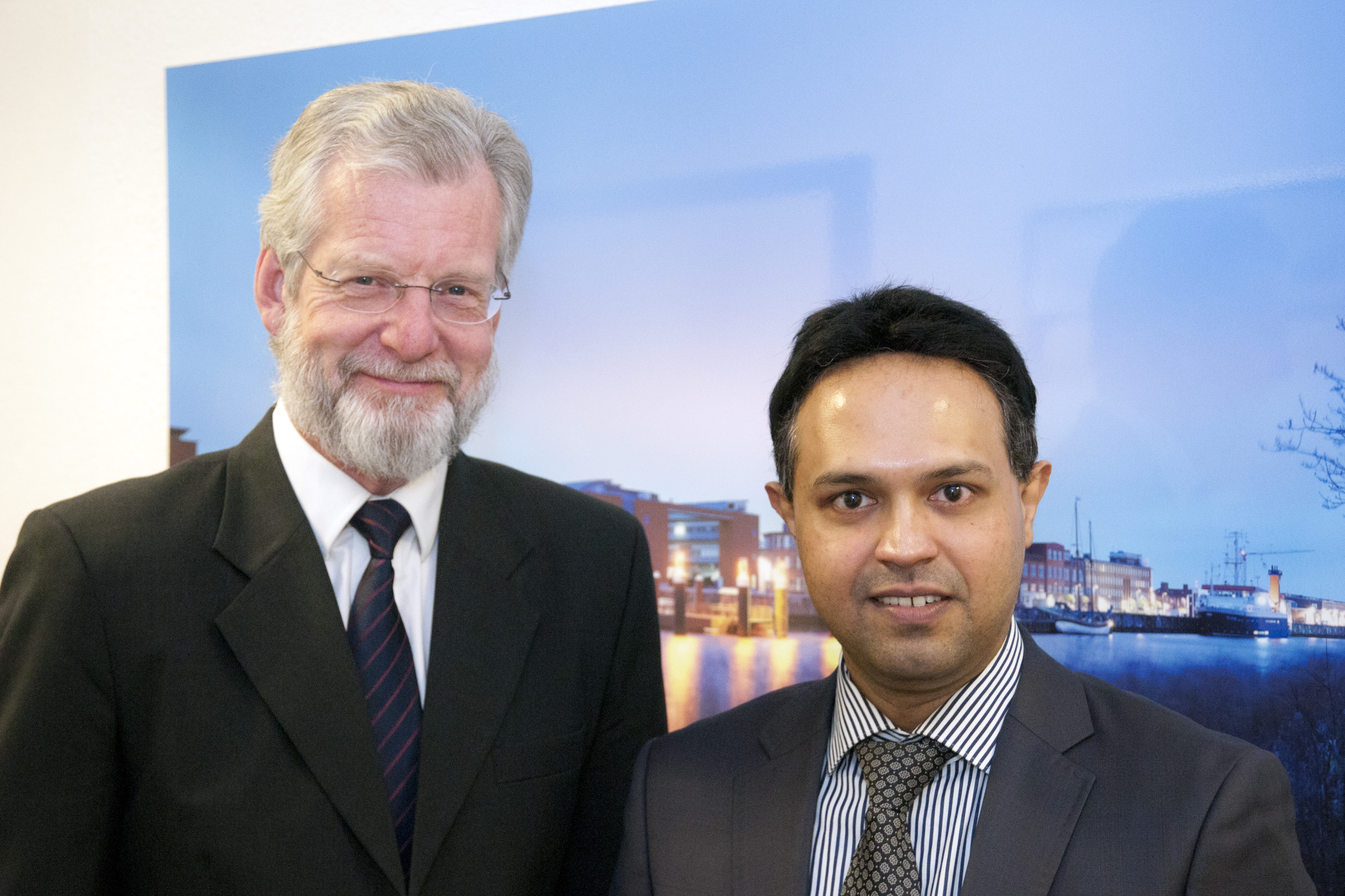 06 February 2014/Kiel. This week, German President Joachim Gauck is visiting India and will be promoting German - Indian cooperation, including an emphasis on the areas of research and science. Against this background, the timing for the visit of the new Indian Consul General in Hamburg, Dr. Vidhu P. Nair, at the GEOMAR Helmholtz Centre for Ocean Research Kiel was rather fortuitous. Today, Dr. Nair held extensive talks with GEOMAR Director Professor Peter Herzig on current developments in marine research in Germany, on active and potential collaborations between Indian and German marine research institutions, and on science policy in general. "India is not only an economically, but also scientifically strongly emerging nation. This establishes the country as an interesting partner. The Indian Ocean and the neighboring regions are very important, for example for resource exploration, but also for studies on the climate or questions about human impacts on the oceans," says Professor Herzig. Even today, there are contacts between GEOMAR scientists and their Indian colleagues, for example, in the study of gas hydrates on the seabed. And in January, researchers from all over Germany met in Kiel at GEOMAR to develop new projects in the Indian Ocean. "Therefore we are pleased that Dr. Nair has chosen to stay in touch with German marine research by visiting GEOMAR just weeks after he took office as Consul General," says Professor Herzig.