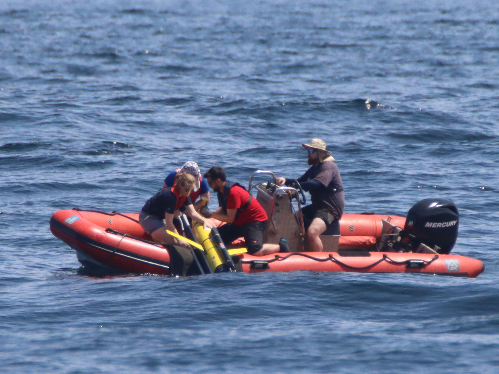 Deployment of a glider off the coast of West Africa during the expedition M189. Photo: Nina Reese, IOW