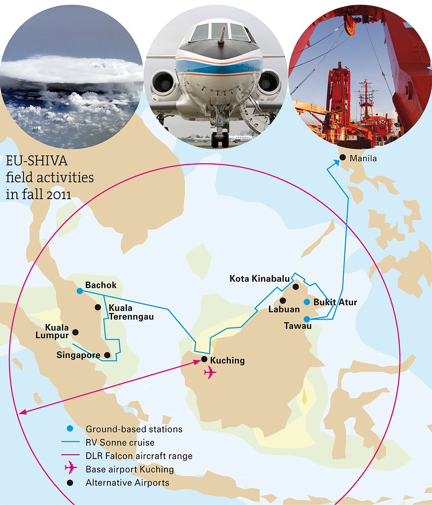 Apart from the anthropogenic ODSs emissions also natural substances such as chlorine and bromine can reach the stratosphere. An important role for the transport plays the deep convection in the Tropics. Here the ODSs that partly originate from the oceans are quickly elevated into the stratosphere and there they are distributed globally. In order to estimate the amount of ODSs and to better understand their transport processes, the EU has funded the project SHIVA (Stratospheric Ozone: Halogen Impacts in a varying Atmosphere) within the 7th Framework programme. The project has 13 partner institutions in five European countries and Malaysia. From January 6-7, 2011, more than 20 scientists met at the Leibniz Institute of Marine Sciences (IFM-GEOMAR) in Kiel, Germany to review the project that started in July 2009 and to plan an international field campaign, taking place during fall of this year in the South China Sea. For the experiment, the scientists will use the research aircraft FALCON of the German Aerospace Centre (DLR) as well as the research vessel SONNE for marine observations. “During the field campaign we want to generate a comprehensive data set in order to make qualitative as well as quantitative estimates on the amount of the transported material, the transport paths and chemical reactions”, says Prof. Kirstin Krüger, professor for meteorology at IFM-GEOMAR. “At IFM-GEOMAR we have a long-term experience to measure the ocean-atmosphere exchange of trace elements. Therefore we can contribute significantly to the marine part of the problem”, Dr. Birgit Quack, marine chemist at IFM-GEOMAR adds. Both scientists are already experienced by other projects in this context and they are now looking forward to welcome the participants of the SHIVA workshop. “We are already curious on the results of the field campaign”, adds Prof. Krüger.