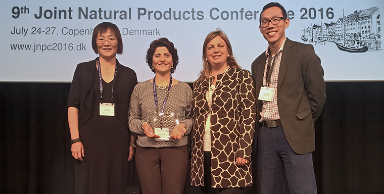 The award was delivered at the 9th Joint Natural Products Conference 2016 (JNPC 2016) that was held in Copenhagen, Denmark, 24-27 July 2016. The JNPC is the largest natural product conference worldwide and organized every four years jointly by the five largest learned natural product societies from the USA [American Society of Pharmacognosy (ASP)] and Europe [The Society for Medicinal Plant and Natural Product Research (GA), The Phytochemical Society of Europe (PSE), Società Italiana di Fitochimica (SIF), Association Francophone pour l’Enseignement et la Recherche en Pharmacognosie (AFERP)]. This year also The Japanese Society of Pharmacognosy (JSP) was involved.