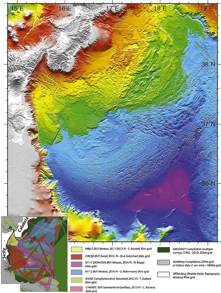 Gutscher, M.-C., H. Kopp, S. Krastel, G. Bohrmann, T. Garlan, S. Zaragosi, I. Klaucke, P. Wintersteller, B. Loubrieu, Y. Le Faou, L. San Pedro, S., M. Rovere, B. Mercier de Lepinay, C. Ranero, V. Sallares (2017): Active tectonics of the Calabrian subduction. Central Mediterranean). Earth and Planetary Science Letters, 461, 61-72, http://dx.doi.org/10.1016/j.epsl.2016.12.020