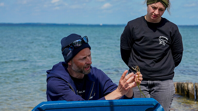 Christian Lieberum (l.) from GEOMAR coordinates the citizen science project for the renaturation of seagrass meadows in the Baltic Sea.