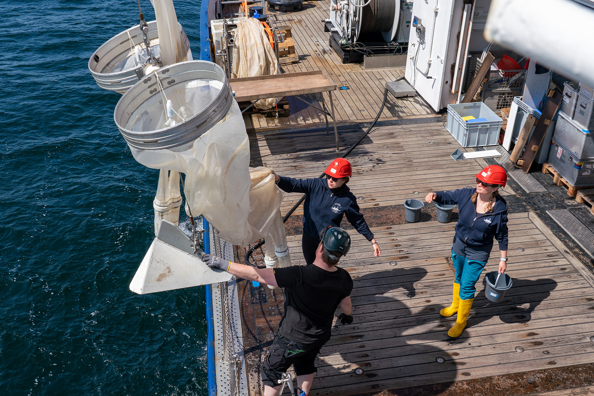 Deployment of a plankton net from research vessel ALKOR during a fisheries biology expedition in the Baltic Sea. Photo: Sarah Kaehlert, GEOMAR