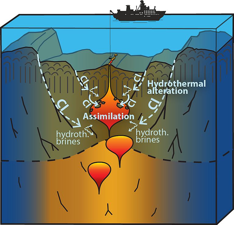 “So far, it has been assumed that high pressure and temperatures prevented water from penetrating below 10 kilometres”, says Prof. Dr. Colin Devey, co-author of the GEOMAR study. “We can now show that the water penetrates much deeper”, Devey continues. This finding is important for the cooling of the oceanic crust and its heat budget, as well as for the total level of volatiles in the oceanic crust, which are later subducted and recycled into the mantle.