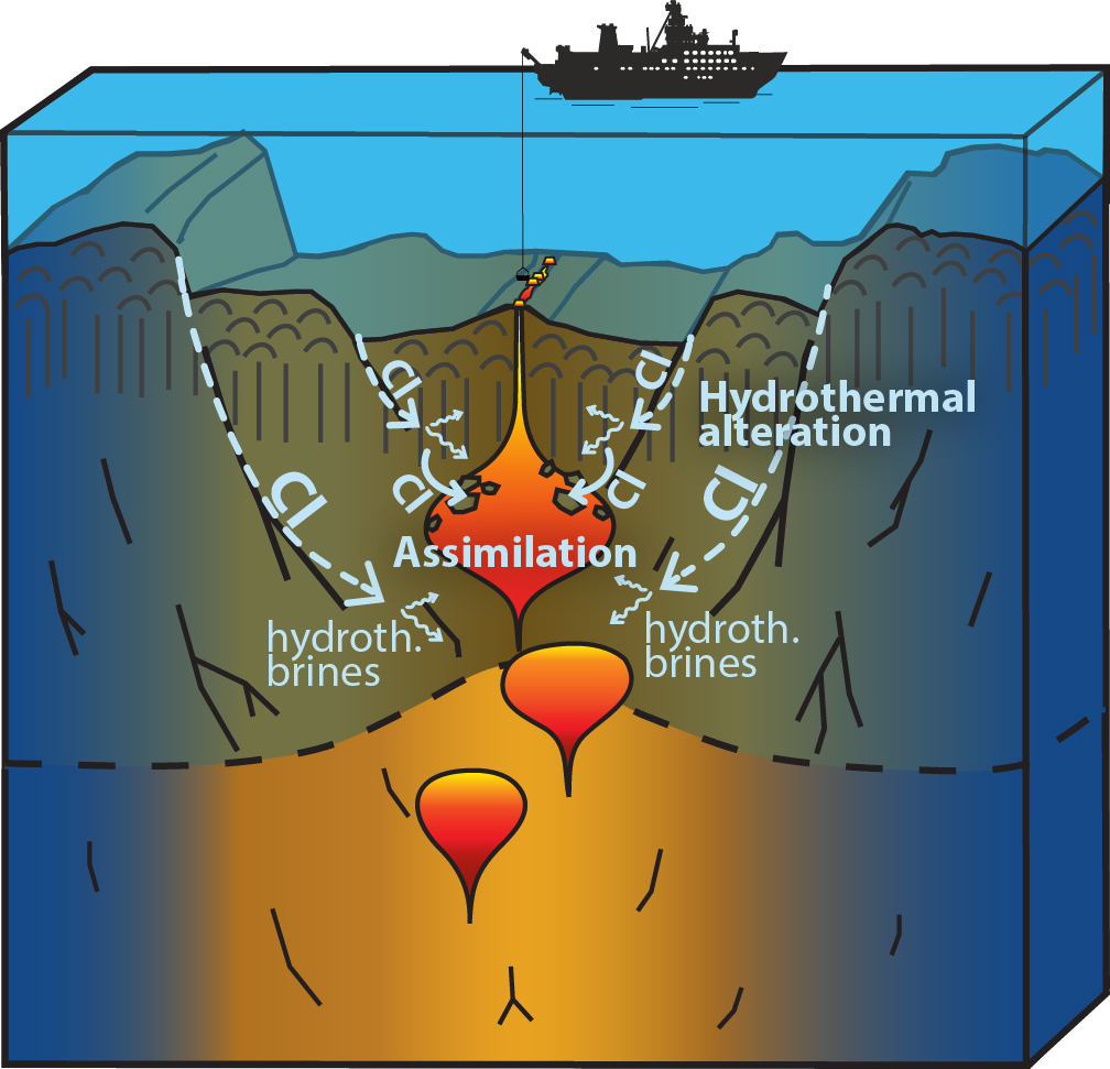 “Chlorine is the key element in our investigations”, explains Dr. Froukje van der Zwan, first author of the GEOMAR study. “We were able to detect this indicator for seawater in basalt rock even in very low concentrations”, van der Zwan continues. In her PhD thesis, she developed a new method to study chlorine levels in rock samples collected at the Southern Mid-Atlantic Ridge and Gakkel Ridge in Central Arctic. In addition, a chemical analysis of selected crystals in the rocks samples also allowed the depth at which the chlorine was incorporated into the rock to be determined.
