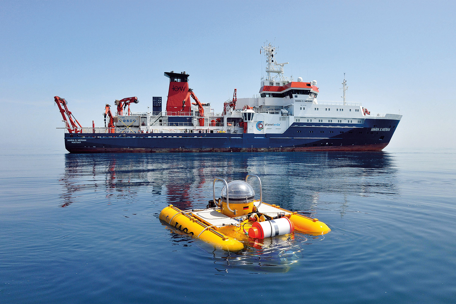 Precise manoeuvrability of MERIAN is provided by a special drive system underneath the hull with two 360° rotating propellers which allow the ship to accurately maintain any position. This is important, for example, when remotely controlled submersible equipment is operated from the deck. Two stabilization systems ensure a comfortable working platform and laboratories for up to 23 scientists, even in rough seas. The ship is managed by Briese Shipping, located in Leer, Germany.