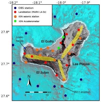 The aim of the expedition is to investigate the El Hierro volcano, Canary islands. Its eruption beginning in 2011 has attracted large attention even beyond the scientific community. The spatial distribution of seismicity has changed since the eruption started in October 2011. The ongoing outbreak is currently located offshore and east of El Hierro. To better characterize the seismicity 12 ocean bottom seismometers (OBS) are deployed to complement the existing measurement network of the Spanish Instituto Nacional Geográfico (IGN). In addition, nine onshore stations are planned. The first eruption in the Canary Islands since 1971, with the associated change in sea depth and the possibility of forming a new island off the coast of El Hierro, opened a rare opportunity to examine this kind of submarine eruption with modern instrumentation. The seismic activity during the last cluster of local events (April 2013) mainly occurred off the coast of the island El Hierro. Observations with the OBS will contribute to a better understanding of additional offshore activity and will help to determin the source parameters.