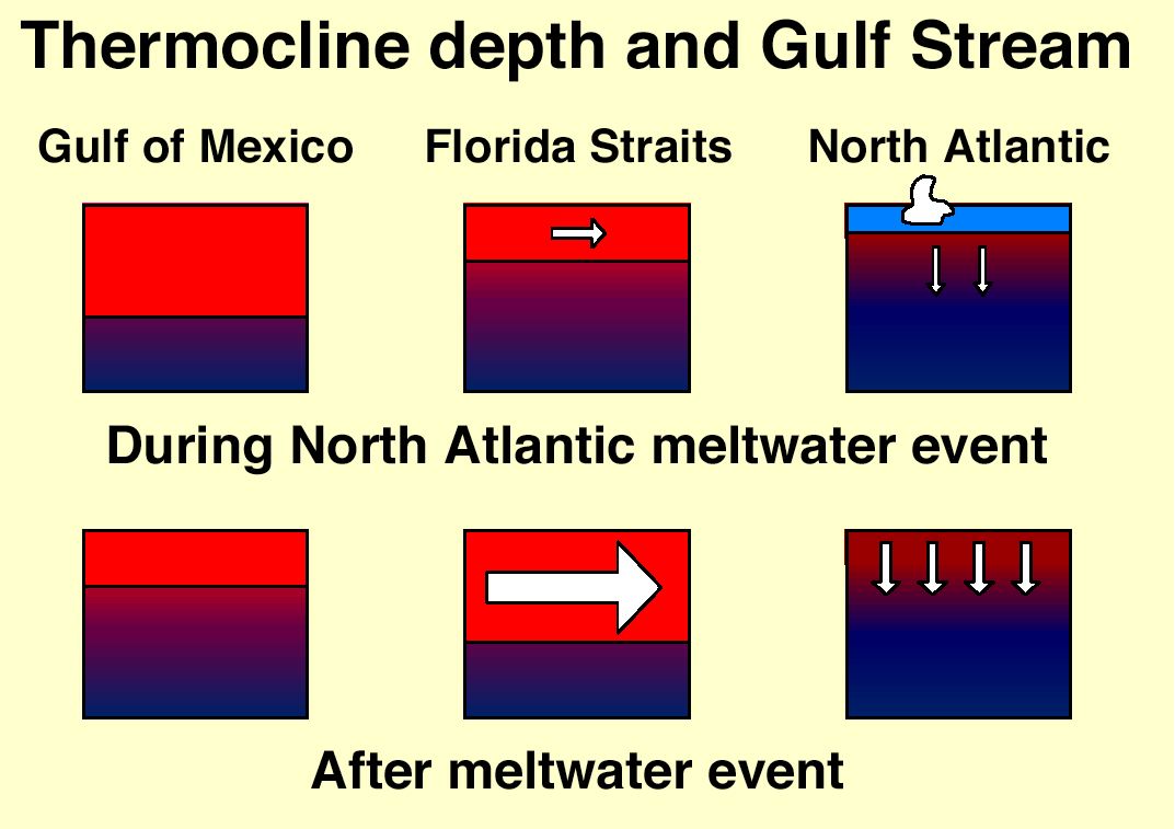 Living conditions in central Europe largely depend on heat supply from the Gulf Stream. The strength and northward extent of this current depends on the formation of North Atlantic Deep Water (NADW) in the Norwegian-Greenland and Labrador seas (Thermohaline Circulation). The deep-water formation was highly variable during the geological past. Large volumes of fresh water were shed into the northern North Atlantic during transient glacier retreat and continental ice sheet desintegration phases during the last ice age (Glacial Terminations, Heinrich Events). The melt waters decreased the sea surface salinity, density, and diminished deep convection. A compensating import of tropical warm water was reduced resulting in a decreased northward oceanic heat flux and a colder North Atlantic climate. As less heat is transported to the North Atlantic, the Caribbean as source region of the Gulf Stream, the South Atlantic and even parts of the Southern Hemisphere warm up (Bipolar Seesaw). Once the formation of North Atlantic Deep Water resumed again, a strong pulse of warm and salt-rich water from the south boosted the deep convective overturning and effected a warmer climat e in the North Atlantic region. Similar but more subtile changes of the North Atlantic Circulation were also felt during historical times (Little Ice Age, Medival Warm Period). It is therefore essential to better understand the role of the tropical ocean as salt and heat provider for the Thermohaline Circulation, atmospheric feed-back mechanisms and interhemispheric teleconnections, and the long-term impact of changes in solar irradation due to changes in earth's orbital parameters.
