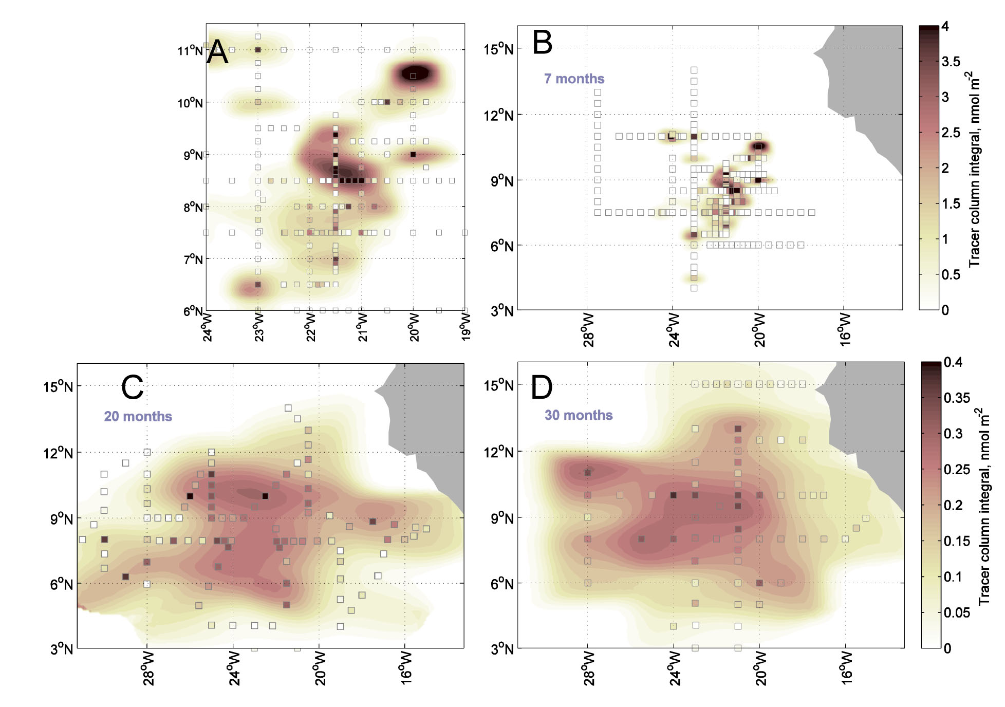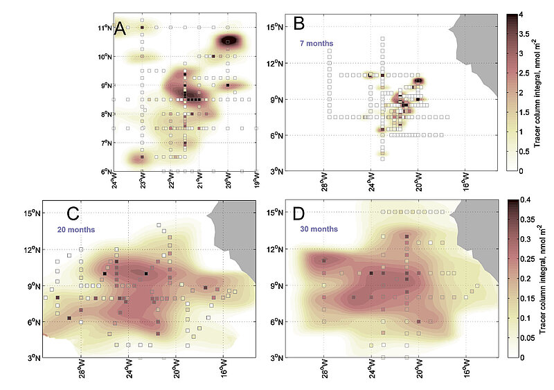 The aim of the study is to quantify and better understand the supply of oxygen to the oxygen minimum zone (OMZ) of the Tropical North Atlantic with a particular focus on the role and efficiency of submesoscale processes for lateral and vertical oxygen transfer. A tracer release experiment is conducted in order to quantify diapycnal and, most importantly, lateral mixing rates in the region. 100 kg of CF3SF5 were injected in the centre of the OMZ at the end of 2012. The tracer distribution is mapped during three subsequent cruises. The tracer experiment results is complemented with shipboard and glider based hydrographic and oxygen measurements and compared to models.