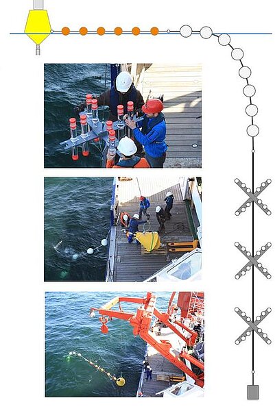 Our approach is dual: (1) we use lab-controlled experiments to provide mechanistic understanding on processes involved in the BCP. This involves understanding the changes in phytoplankton physiology that promote secretion of sticky compounds (transparent exopolymers) that promote particle formation as well as the heterotrophic pathways of particulate organic matter degradation resulting from climate induced changes in CO2, O2 concentration or organic matter quality. We also investigate the effect of increasing anthropogenic pollutant such as microplastic on processes linked to the biological carbon pump (2) we use field study to test and parameterize our findings on the biological carbon pump cycling earned in vitro using innovative tools like sediment traps and particle degradation bioassays. Also, field studies provide unique opportunity to assess the biological carbon pump in a quantitative manner. Results are then used to better resolve the biological carbon pump in numerical models and further integrated in large IPCC like simulations of the earth system. Our approach uses innovative technologies like the surface tethered sediment traps (Figure 2) and various particle incubation systems developed in collaboration with the GEOMAR Technical and Logistic center (TLZ).
