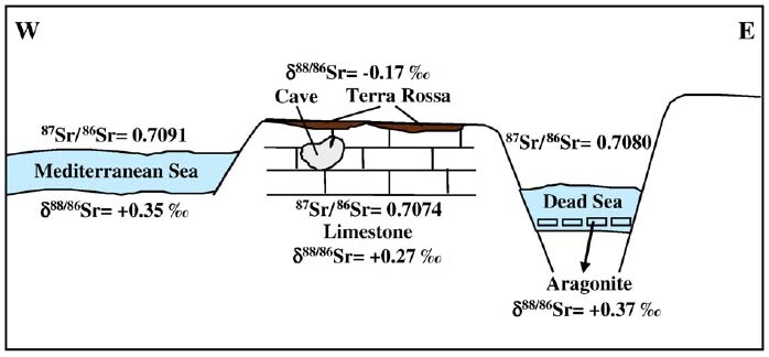 The sampling will cover soils, their bedrocks and water from the Judea-Samaria anticline (Terra Rossa and Rendzina) as well as dust material that is currently blown to the region during major dust storms. Additionally, Triassic laterites will be sampled from the Ramon crater in the Negev Desert. Sequential leaching of soil and rock samples from these various terrains will allow us to identify the mineralogical-chemical association of particular δ88/86Sr values. The experiments will include slight leaching in acetic acid (attacks the carbonates), stronger leaching by HCl (dissolves iron oxides) to total dissolution by HF and HNO3 (attacks the silicate phases e.g. silicate dust particles).