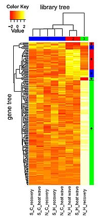 Figure: Heat map illustrating transcriptomic resilience in a marine keystone plant. Franssen et al. PNAS 2011