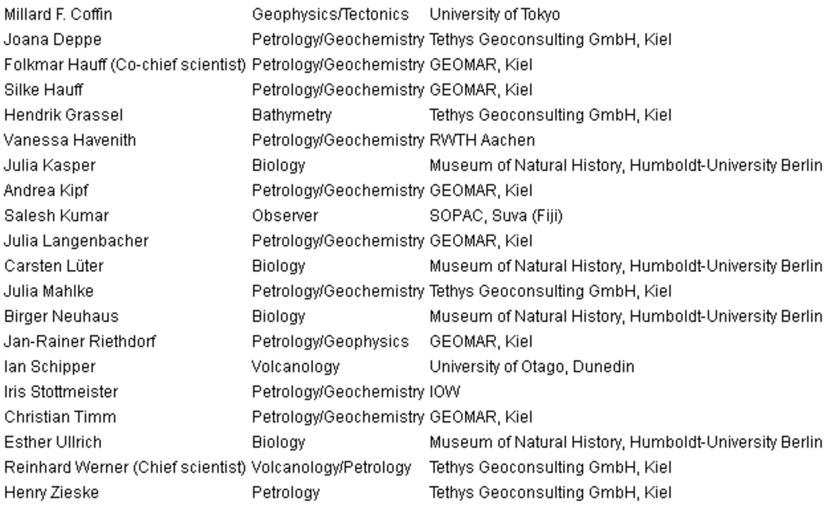 The integration of the results with existing data from the Manihiki, Hikurangi and Ontong Java Plateaus resulted in a new and improved model for the spatial, temporal, and magmatic evolution of the Manihiki Plateau. This approach contributed towards a better understanding of the formation of Large Igneous Provinces and the geodynamic evolution of the SW-Pacific. Furthermore SO193 MANIHIKI aimed to verify if the Manihiki Plateau possibly represents only a part of the products of a much larger magmatic event and, therefore, has been formed by a Cretaceous „mega event“ with huge magma production rates (e.g., „Greater Ontong Java Plateau Event“). Such extensive volcanism no doubt had a dramatic impact on the paleo-environment of the southwest Pacific but possibly also had implications for the mass transfer between mantle and lithosphere and consequently for the heat budget and heat flux in the Earth´s interior. Whether separate events or a single mega event, the volcanism associated with these three oceanic plateaus must have had a dramatic impact on the chemistry, temperature and life in the southwest Pacific Ocean.