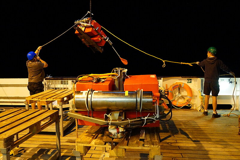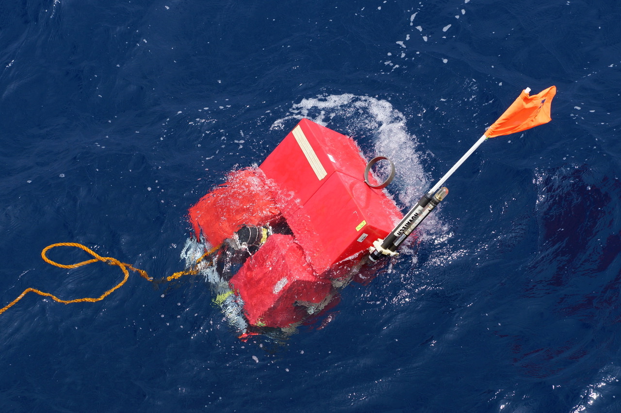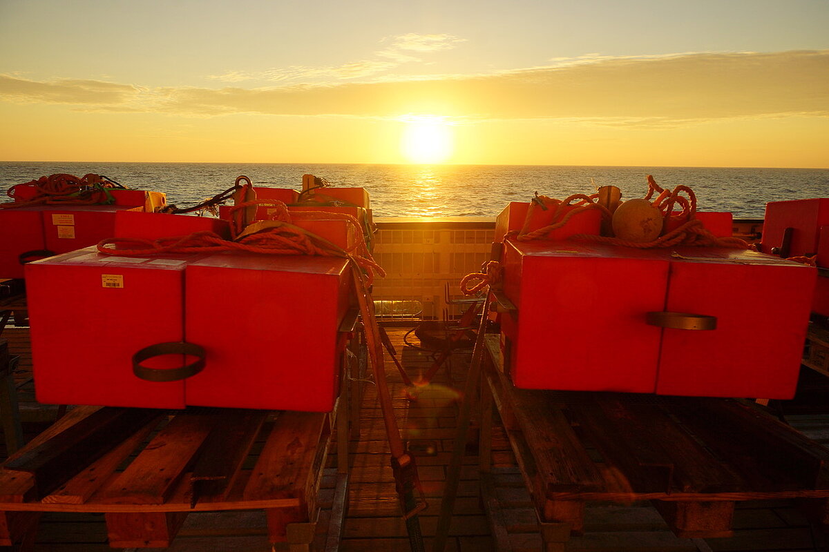 Ocean Bottom Seismometers during deployment from RV SONNE