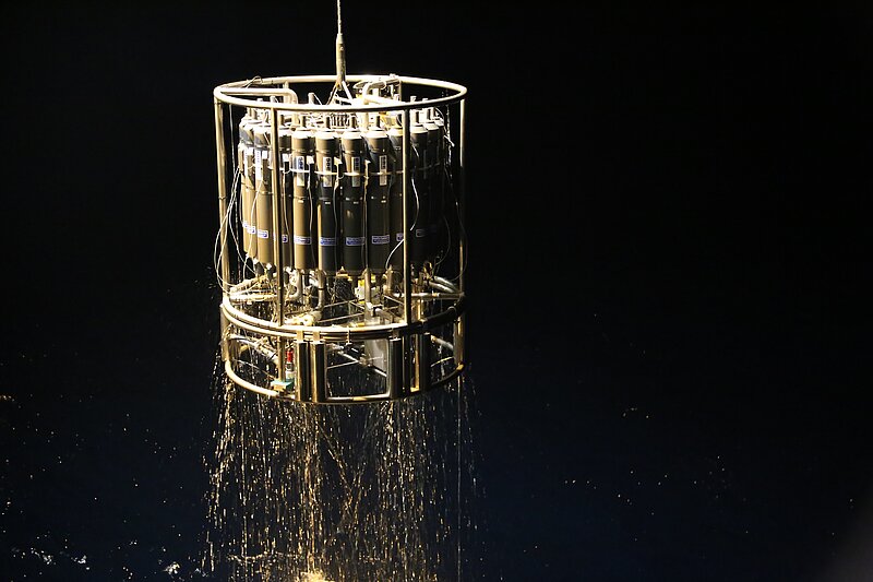 At hydrothermal sources such as Black smokers emit hot fluids up to 400°C, which differ significantly physically and chemically from the surrounding seawater. This fluid dilutes immediately upon exit from the hydrothermal source with the seawater present in almost infinite quantities. But even the smallest changes in chemistry (e.g. pH value) or physics (e.g. temperature, cloudy, electrical potential) can be detected with modern technology. These so-called "plumes" spread over significantly longer distances than the actual field of hydrothermal activity from which they originate. Once discovered, we then try to chase after the origin of the "plum". This is done with water samples using CTD-Rosette, Tow-Yos and MAPR (Mini-Autonomous Plume Recorder) and the AUV, which is routinely equipped with special water sensors.