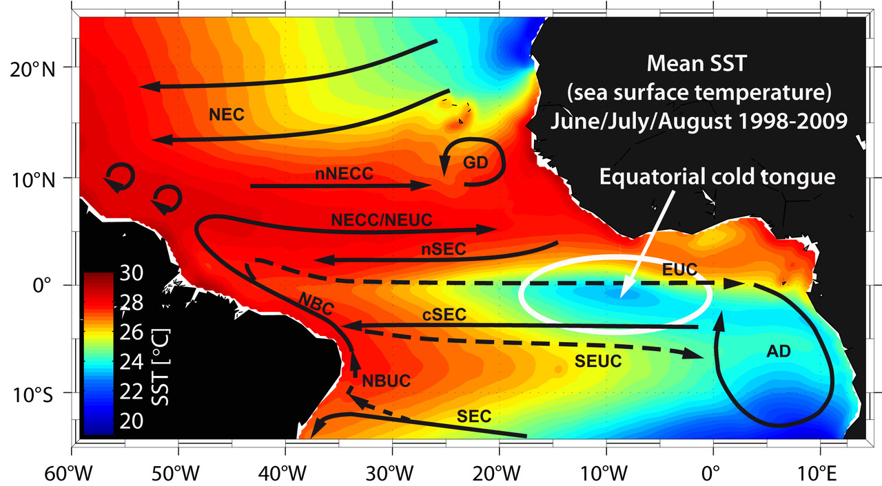 Brandt, P., A. Funk, V. Hormann, M. Dengler, R. J.Greatbatch, J. M. Toole: Interannual atmospheric variability forced by the deep equatorial Atlantic Ocean, 2011, Nature Advance Online Publication, doi: 10.1038/nature10013: