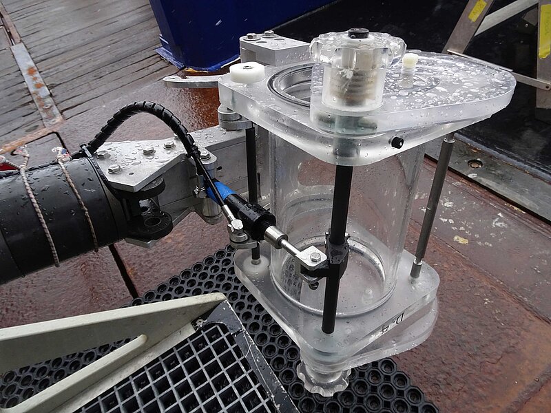 b) sediment sampling using pushcores of a acidification experiment at the INTAROS Lander