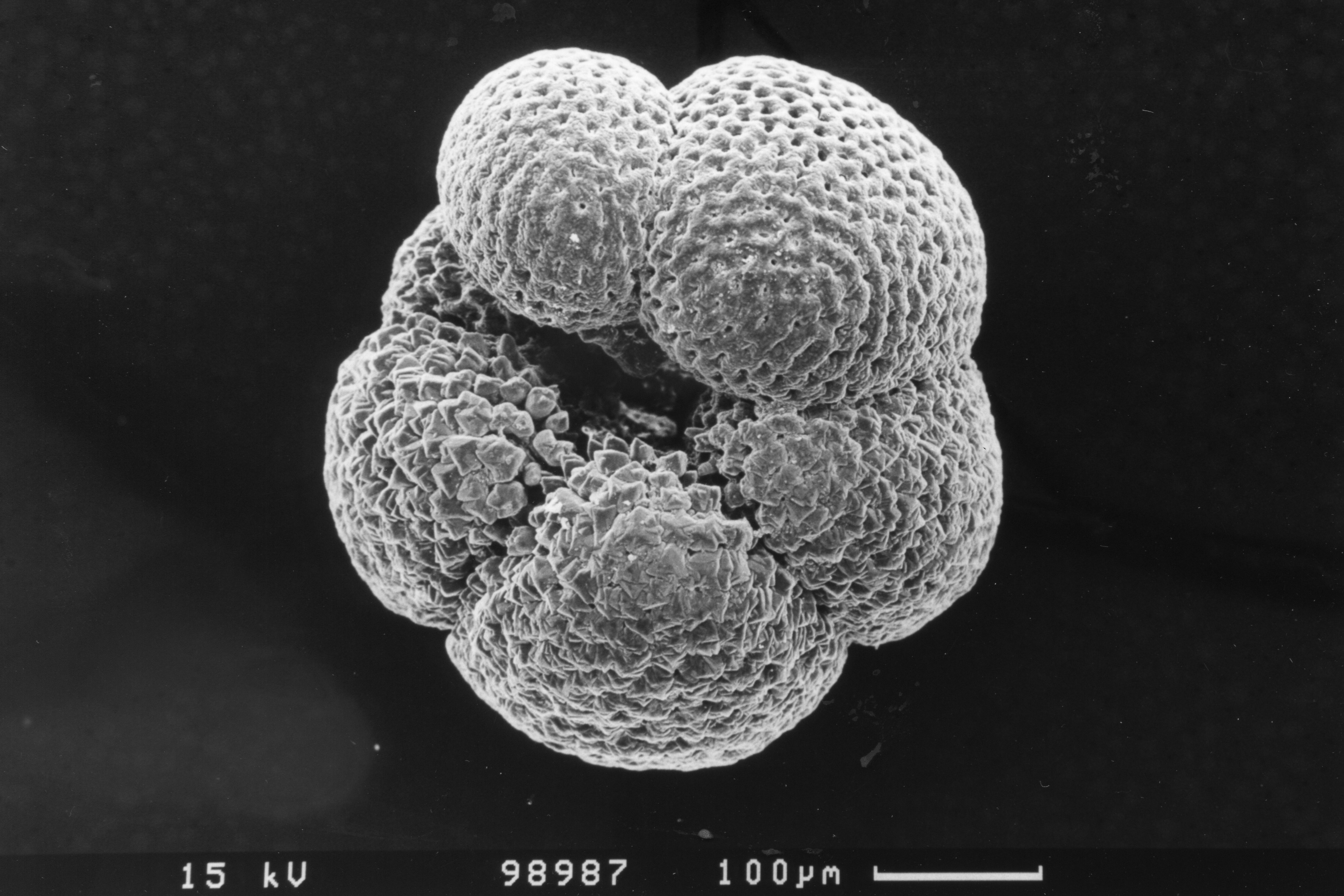 Mikrofossilien wie dieser planktisch lebende Einzeller (Foraminifere), die aus den ozeanischen Schlammablagerungen extrahiert werden, speichern in ihren Kalkschalen die Ozean- und Klimaentwicklung der Vergangenheit. Foto: Dr. Tebke Böschen