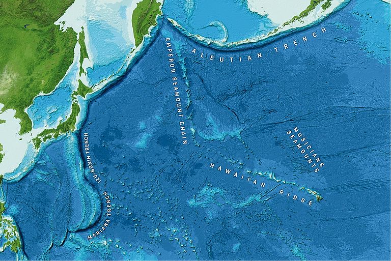 „Auch die geochemischen Analysen brachten eine Überraschung. Denn die Zusammensetzung der Proben von den Musician-Seamounts ähnelt eher Vulkanen, die an mittelozeanischen Rücken entstehen als denen, die über einem Hotspot wachsen“, erklärt Dr. Folkmar Hauff vom GEOMAR, Co-Autor der Studie. Möglicherweise sind vor rund 50 Millionen Jahre große Brüche in der Pazifischen Erdplatte aufgetreten, die zur Entstehung dieser Vulkane geführt haben. Gleichzeitig, das ist aus älteren Studien bekannt, begannen sich im Nord- und Westpazifik ozeanische Erdplatten übereinander zu schieben. Eindrucksvoller Zeuge dieser Prozesse sind die Izu-Bonin-Marianen und der Aleuten-Inselbogen. „Unsere Analysen von den Musicians-Seamounts zeigen, dass all diese Ereignisse zusammenhängen könnten. Und diese großräumigen Änderungen haben vermutlich auch den Knick in der Hawaii-Emperor-Kette verursacht“, betont Professor Hoernle.