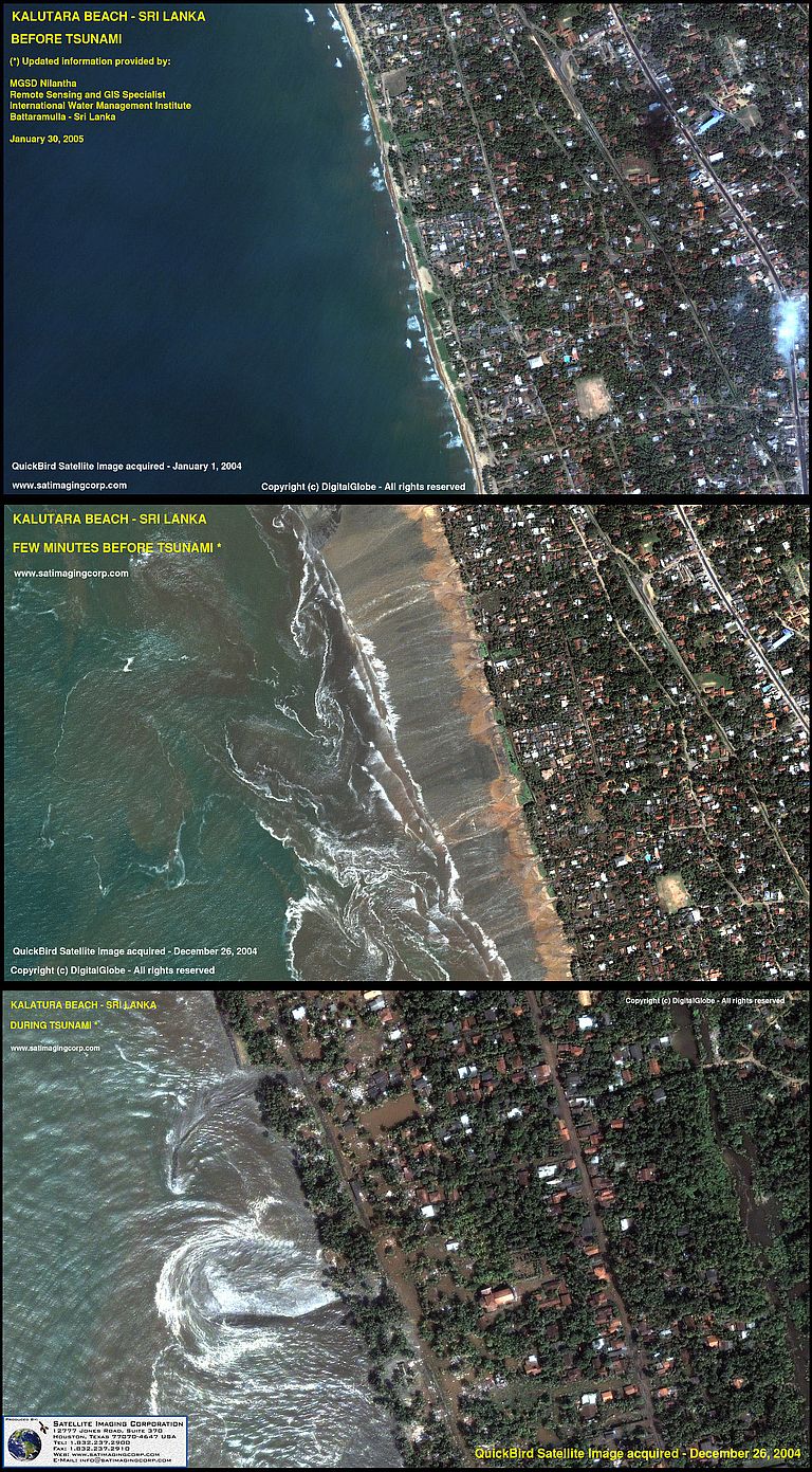 Beim dem katastrophalen Tsunamui vom 26.12.2004 lag das Epizentrum ca. 350 Kilometer vor der Küste von Nord-Sumatra. Der Tsunami erreichte die Küste nach etwa 30 Minuten. Nach einer Stunde erreichte die Welle Thailand, nach zwei Stunden Sri Lanka, nach drei Stunden die Malediven und nach etwa sieben Stunden die ostafrikanische Küste.