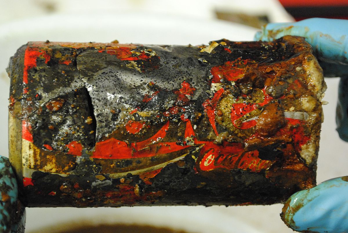 Der ferngesteuerte Tiefseeroboter ROV KIEL 6000 barg im Jahr 2015 auf einer Mission einige Müllteile vom Meeresboden. Darunter war eine Plastiktüte mit einer Cola-Dose, die zu einer Sonderedition anlässlich des Davis-Cups 1988 gehörte. „Die Dose aus Aluminium alleine wäre in der Tiefsee längst korrodiert. Aber sie war so dicht im Inneren der Plastikmülltüte eingewickelt, dass sie sich erhalten hat. Das zeigt auch, dass die Mülltüte das gleiche Alter haben muss“, sagt Dr. Matthias Haeckel vom GEOMAR, damals Projektleiter an Bord. Bei einem zweiten geborgenen Objekt handelte es sich um eine Quark-Packung eines deutschen Herstellers. Die aufgedruckte Adresse zeigt eine fünfstellige Postleitzahl. Die wurden in Deutschland erst 1990 eingeführt. Der Hersteller wurde aber schon 1999 von einer Konkurrenzfirma aufgekauft, womit der Markenname verschwand. „Dabei zeigte sich, dass weder die Tüte noch die Quarkpackung Zeichen von Fragmentierung oder sogar Abbau in ihre Bestandteile aufwiesen“, sagt der Biochemiker Dr. Stefan Krause vom GEOMAR, Hauptautor der aktuellen Studie. Er leitete die Analysen an Land.
