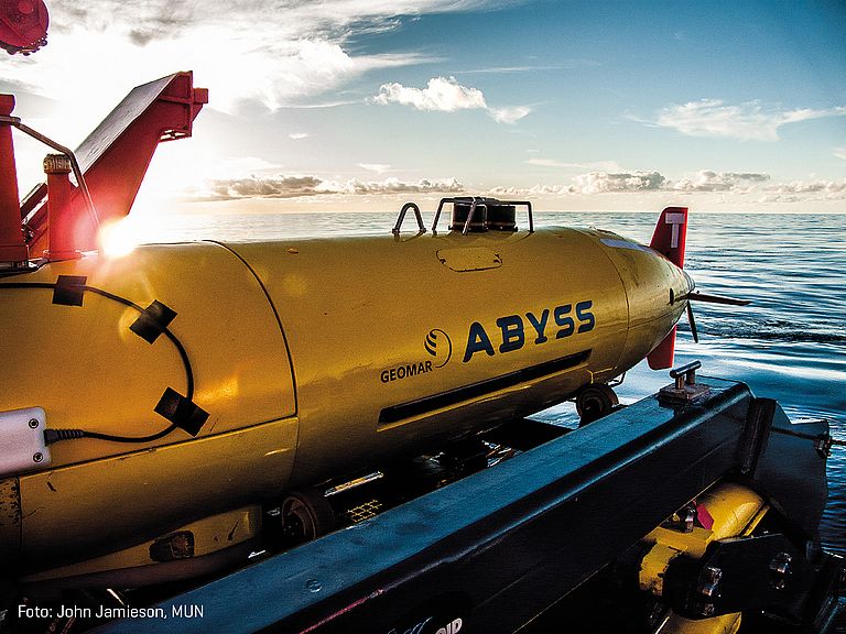 Wie sieht die Unterwasserlandschaft des Meeresbodens aus? Wie viel Metall steckt in den Gebirgen und im Meeresboden unserer Ozeane? Können wir durch schonenden Meeresbergbau die globale Rohstoffversorgung sichern? Das autonome Unterwasserfahrzeug AUV ABYSS wartet auf dem Forschungsschiff METEOR auf seinen Einsatz, um diese und weitere Fragen zu beantworten.