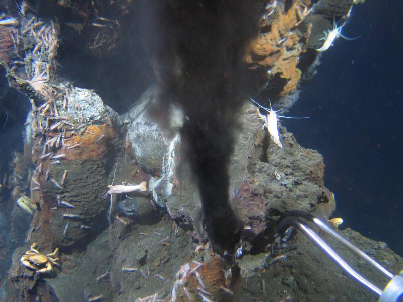 Massivsulfide entstehen dabei durch die Wechselwirkung von kaltem Meerwasser mit dem heißen vulkanischen Gestein im Untergrund. Das Wasser wird auf Temperaturen bis über 400°C erhitzt, reagiert mit dem umgebenden Gestein und löst die enthaltenen Metalle heraus. Aufgrund der Erwärmung verändert sich die Dichte des Wassers, es steigt schnell zum Meeresboden auf und tritt unter hohem Druck aus. Trifft diese Lösung auf kaltes Meerwasser, lagern sich die Metalle ab und bilden schornsteinartige Strukturen, die wir als „Schwarze Raucher" bezeichnen. Allerdings sind nur wenige der bekannten Vorkommen groß und rohstoffhaltig genug, um für den wirtschaftlichen Abbau interessant zu sein. Es wird aber vermutet, dass inaktive Vorkommen, die ihre gesamte Entstehungsgeschichte bereits hinter sich haben, deutlich größer sein könnten.