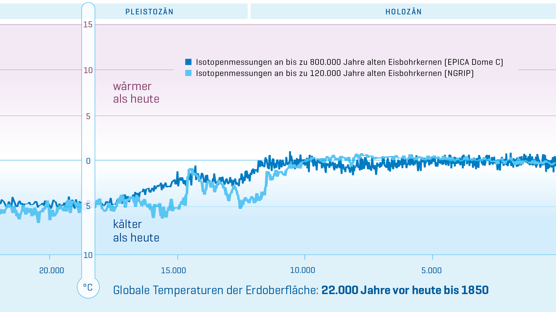 Schon wenige Grad Unterschied können das Leben auf dem Planeten erheblich beeinflussen: Als Nordeuropa das letzte Mal vergletscherte, war es durchschnitllich nur 4 Grad kälter - die Welt aber eine grundlegend andere. Das lässt Prognosen darüber zu, was bei einer Erwärmung dieser Größenordnung passieren könnte.