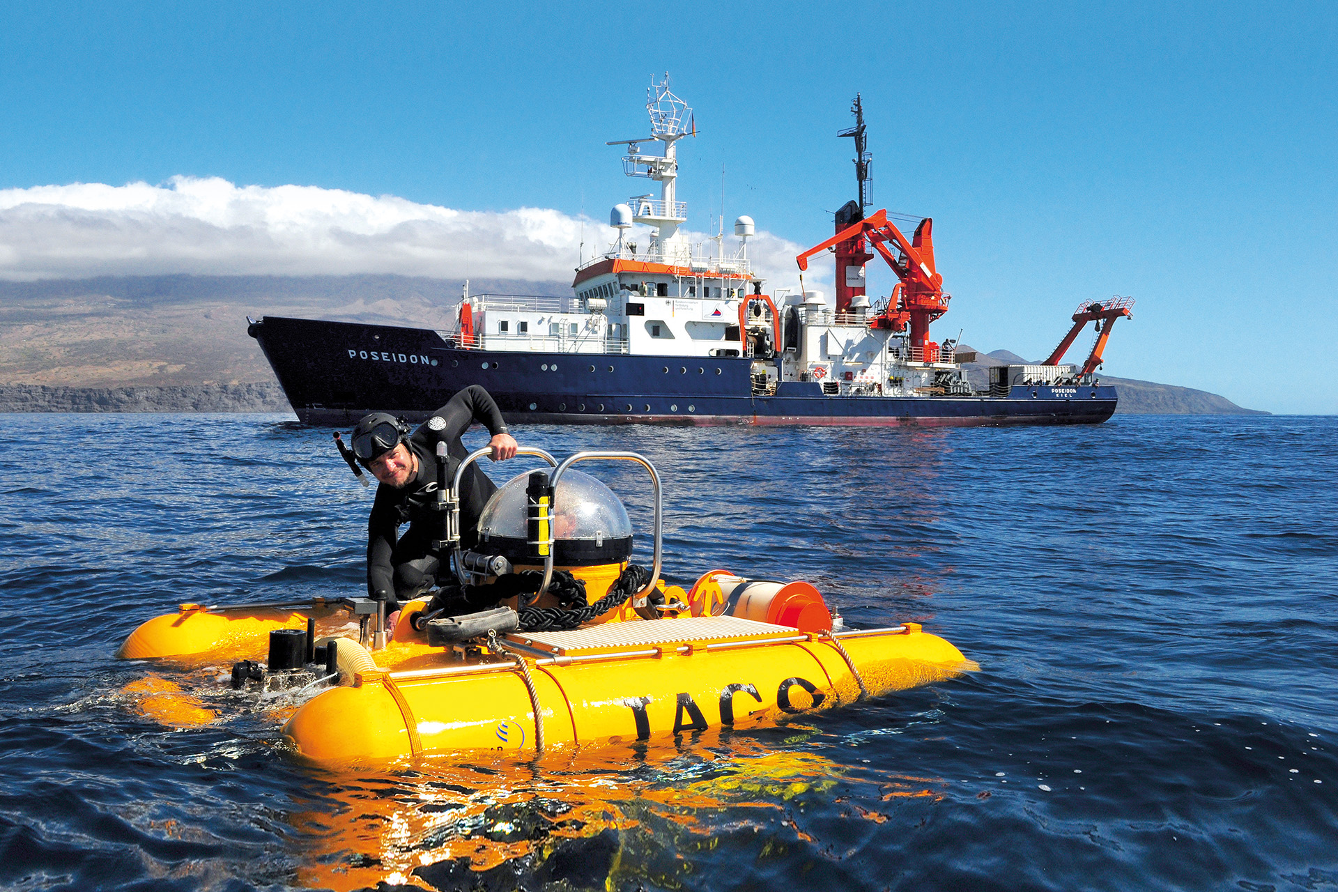 Die Hänge der Inseln im Archipel Cabo Verde fallen steil in die Tiefsee ab – beste Bedingungen, um Tiere im Freiwasser zu erforschen. JAGO ist dafür bestens geeignet, weil man mit dem Tauchboot wie in einer Luftblase auf einer bestimmten Tiefe austariert mit der Strömung driften kann. So bekamen die Teilnehmenden der Expeditionen POS520 und PO532 mit dem Forschungsschiff POSEIDON im Februar 2018 und 2019 neue Einblicke in die Welt der freien Wassersäule – dem Lebensraum von Quallen, Staatsquallen und Rippenquallen, von schwebenden Krebstieren, Kalmaren und Fischen.