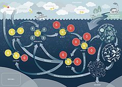 Ein Brettspiel zum marinen Stickstoffkreislauf für bis zu 4 Personen. Ziel des Spiels ist es, alle Transformationen des Stickstoffs im Stickstoffkreislauf mindestens einmal zu durchlaufen. Spieldauer: 1,5 - 2 Stunden.