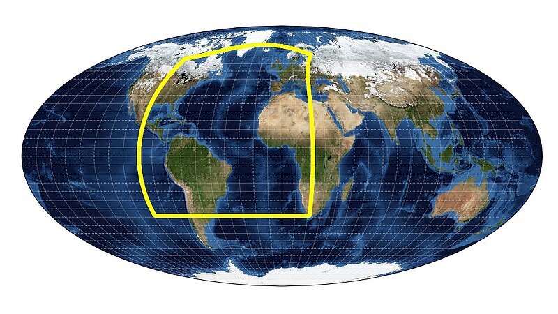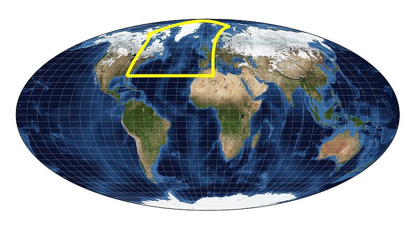 Die Grenzen für das VIKING20X Nest wurden gegenüber dem Vorgänger VIKING20 nach Süden erweitert, um die mesoskaligen Prozesses, die die meriodionale Umwälzung beeinflussen im gesamten Atlantik auflösen zu können, nicht nur in den subpolaren bzw. polaren Becken.