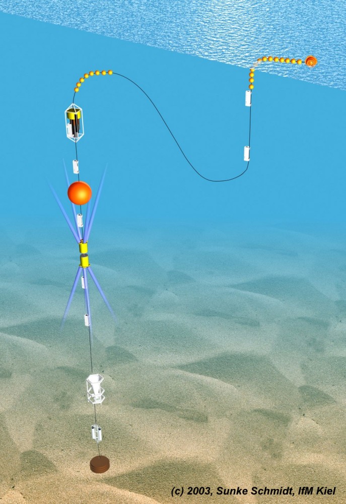 Als „Verankerung“ bezeichnet man eine Messapparatur bei der selbstregistrierende Sensoren in unterschiedlichen Wassertiefen, aber an einem Ort fest verankert (daher der Name), installiert werden. Als „Träger“ wird meist Stahl oder Plastikseile genutzt die an ein am Meeresboden platziertes Grundgewicht montiert sind. Damit das Seil nahezu senkrecht im Wasser steht, werden zwischen die Sensoren Auftriebskugeln aus Glas oder Schaumstoff angebracht (siehe Abbildung).