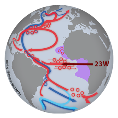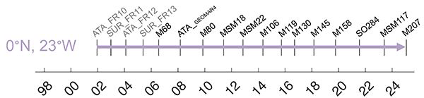 - Tuchen, Franz Philip; Brandt, Peter; Hahn, Johannes; Hummels, Rebecca; Krahmann, Gerd; Bourles, Bernard; Provost, Christine; McPhaden, Michael J; Toole, John M (eds.) (2022): Data product of full-depth current velocity observations at 0°N, 23°W from 2001-2021 (v1.0) [dataset editorial publication]. PANGAEA, doi.org/10.1594/PANGAEA.941042