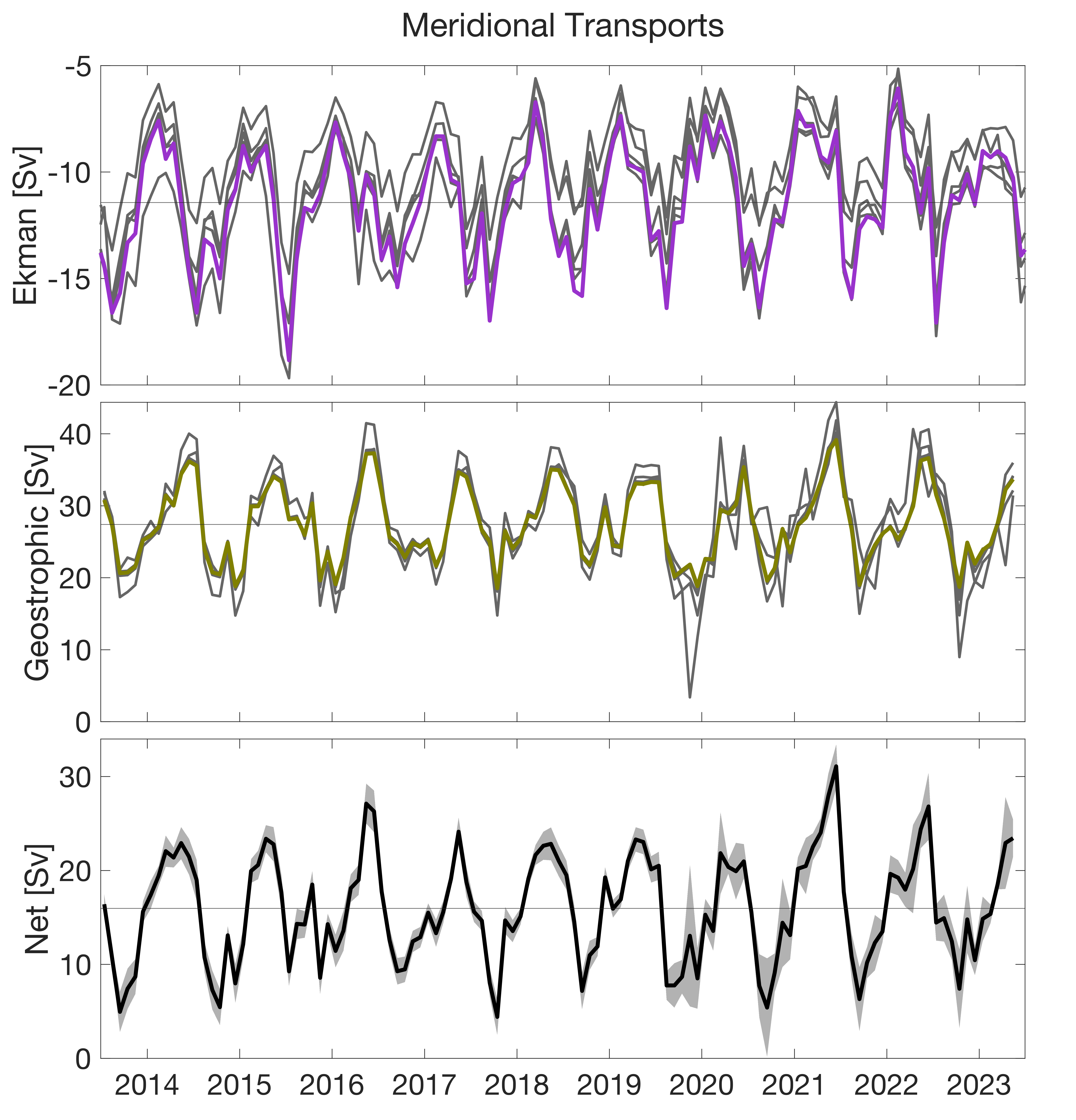 - Herrford et al. (2021). Seasonal variability of the Atlantic Meridional Overturning Circulation at 11°S inferred from bottom pressure measurements, Ocean Sci.