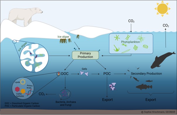 Sowohl die Atlantifizierung als auch der Verlust von Meereis werden voraussichtlich die Dynamik des Phytoplanktons beeinflussen. Da organische Stoffe, die von Phytoplankton produziert werden, die Grundlage des marinen Nahrungsnetzes bilden, könnten diese Veränderungen auch die Größe und Zusammensetzung des organischen Stoffpools und infolgedessen die biologische Kohlenstoffpumpe beeinflussen. Diese Dynamiken sind jedoch noch nicht gut verstanden.